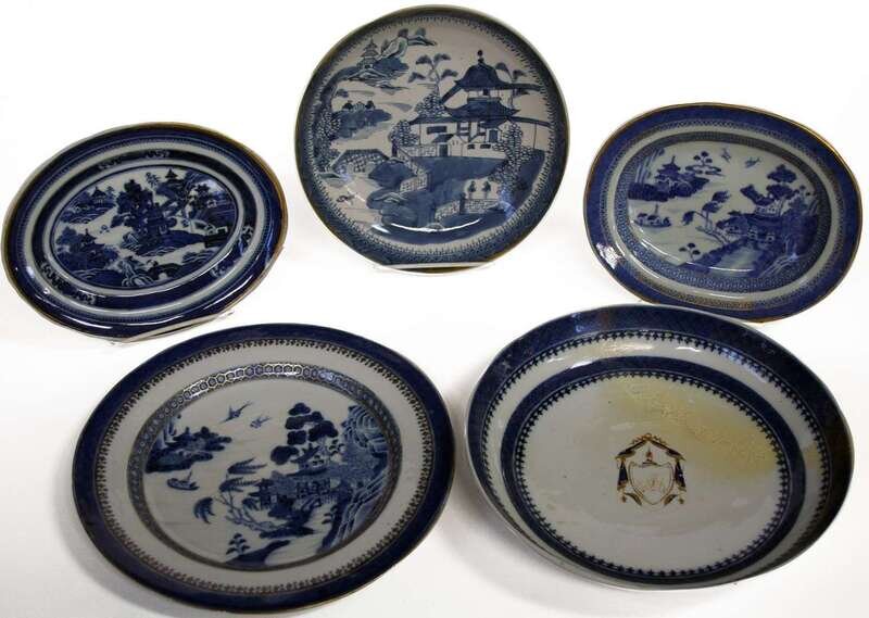 Including two oval stands: one a Canton stand and the other a Nanking stand, a dinner plate, a Nanking deep dish and an armorial deep dish.