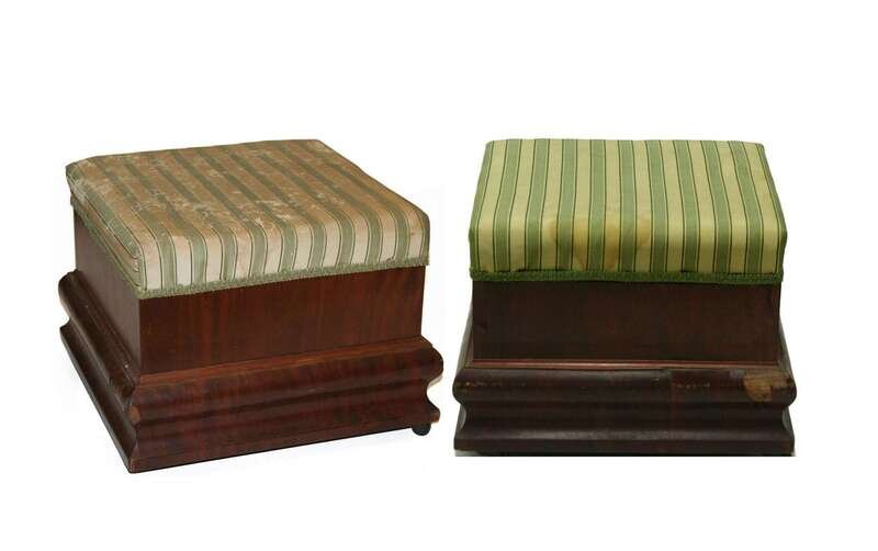 Pair of late Classical upholstered and mahogany footstools circa 1825