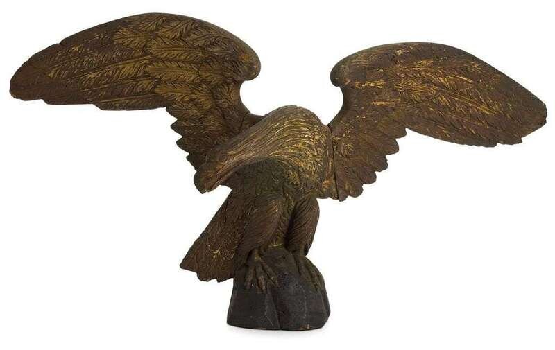 The eagle with outstretched wings perched on a rock, retains traces of gilt.