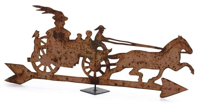 Painted sheet metal weathervane of horse-drawn steam engine late 19th/early 20th century