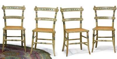 Set of six painted and decorated cane-seat chairs mid19th century