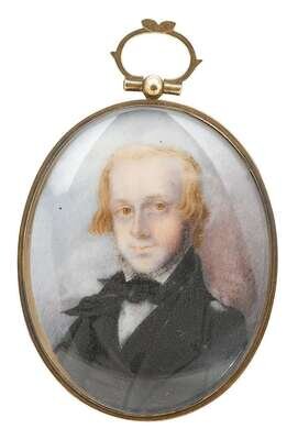 American School 19th century miniature portrait of a young red-haired gentleman