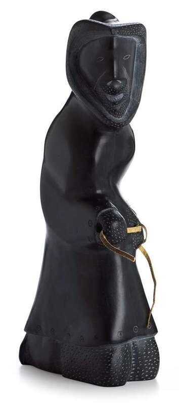 Large Inuit soapstone figure of a kneeling seal hunter 20th century