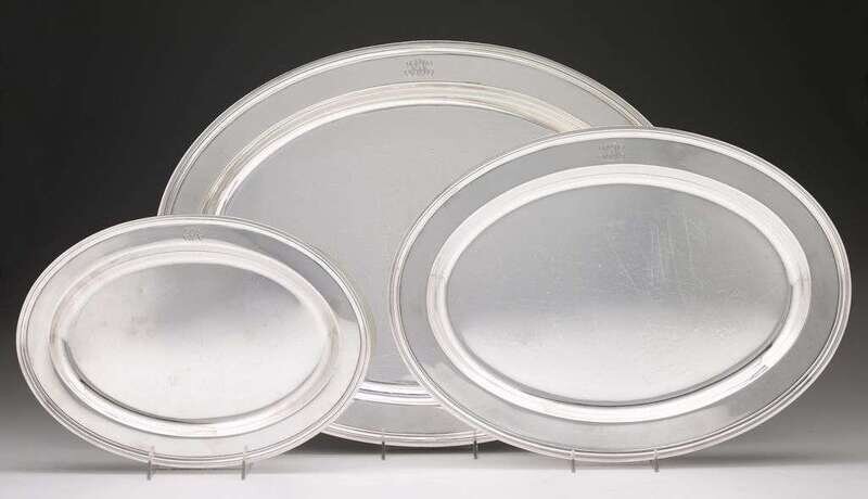 Set of three sterling silver nested serving trays tiffany and co., new york, ny, first half 20th century