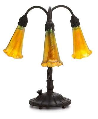 Favrile glass and bronze three-light Lily desk lamp tiffany studios, new york, ny, early 20th century