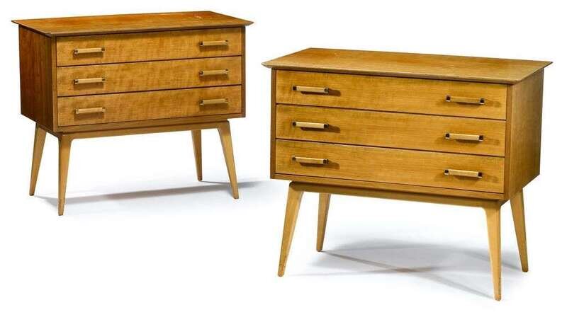 Pair of Moderne maple chests of drawers johnson furniture company, grand rapids, mi