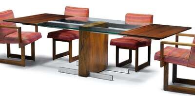 Rosewood, glass and chromed steel Cubist extension dining table vladimir kagan, new york, ny, 1969
