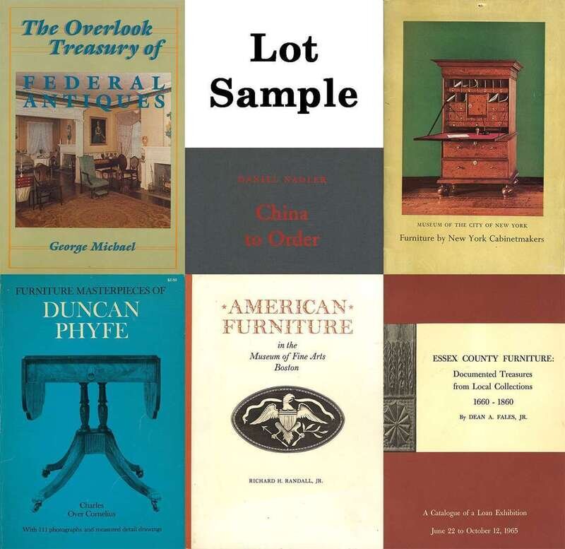 Including Samuel Chaberlain, Salem Interiors (1950); Hampton National Historic Site Guidebook (2010); Dean A. Fales Jr., Essex County Furniture: Documented Treasures from Local Collections 1660-1860 (1965); June Avery Snyder and Martin P. Snyder, The Story of the Naomi Wood Collection and Woodford Mansion (1981); Winterthur Portfolio V14, #3 (1979); Aaron Woolley Cornwall, A Pictorial History of the Anglican Churches in Colonial America: 1607-1776 (1988); Charles T. Butler (editor), American Art in the Columbus Museum (2003); Robert Bishop and Patricia Coblentz, American Decorative Arts (1982); Robert D. Mussy Jr., The Furniture Masterworks of John Thomas Seymour (2003); Brock Jobe, Garry R. Sullican and Jack O'Brien, Harbor & Home (2009); Jonathan L. Fairbanks and Elizabeth Bidwell Bates, American Furniture: 1620 to the Present (1981); The Garbisch Collection: Important American Furniture and Related Decorative Arts Volumes 3 & 4 (1980); Beatrice B. Garvan, Federal Philadelphia 1785-1825 (1987); Girl Scouts Loan Exhibition Catalogue: Eighteenth and Early 19th Century Furniture and Glass (1929, reprinted in 1977); Francis J. Puig and Michael Conforti (Editors), The American Craftsman and the European Tradition: 1620-1820 (1989); Barry A. Greenlaw, New England Furniture at Williamsburg (1974); Carol Borchert Cadou, The George Washington Collection: Fine and Decorative Arts at Mount Vernon (2006); Christopher P. Monkhouse and Thomas S. Michie, American Furniture in the Pendelton House (1986); Kenneth L. Amers and Gerald W.R. Ward, Decorative Arts and Household Furnishings in America: 1650-1920 (1989); Margaret J. Moody, American Decorative Arts at Dartmouth (1981); Joseph T. Butler, Sleepy Hollow Restorations: A Cross Section of the Collection (1983); Raymond E. Barlow and Joan E. Kaiser, The Glass Industy in Sandwich Volumes 1,3,4,5 (1983-1999); John L. Scherer, New York Furniture: The Federal Period 1788-1825 (1988); John L. Scherer, New York Furniture at the New York State Museum (1983); Marvin W. McFarland, The Stephen Girard Collection (1970); The Bicentennial Exhibition of American Federal Furniture Register of Items, Thomas Schwenke American Federal Furniture (1976); V. Isabelle Miller, Museum of the City of New York: Furniture by New York Cabinetmakers (1956); WYCK: Witness to a Way of Life; William Macpherson Hornor Jr., Hornor's Blue Book: Philadelphia Furniture (1988); Penny J. Sandler (Editor), Elegant Embellishments: Furnishings from New England Homes 1660-1860 (1982); Richard H. Randall Jr., American Furniture in the Museum of Fine Arts Boston (1985); Gary J. Albert, Journal of Early Southern Decorative Arts (Summer 2000); Wendell Garrett, Classic America: The Federal Style and Beyond (1992); Beatrice B. Garvan, The Pennsylvania German Collection-Philadelphia Museum of Art (1982); Rachel Pellman and Kenneth Pellman, The World of Amish Quilts (1984); Kirk J. Nelson, A Century of Sandwich Glass (1992); Wendell Garrett, American Coloniol: Puritan Simplicity to Georgian Grace (1995); Helen Comstock, American Furniture: Seventeenth, Eighteenth, and Nineteenth Century Styles (1962); Charles L. Vanable, American Furniture in the Bybee Collection (1989); Patricia E. Kane, 300 Years of American Seating Furniture (1976); The Brandywine Heritage: Hoawrd Pyle, N.C. Wyeth, Andrew Wyeth, James Wyeth (1971); National Trust for Historic Preservation, Woodlawn Plantation, Mount Vernon, Virginia; Dean T. Lahikainen, Samuel McIntire: Carving on American Style (2007); William Voss Elder III and Lee Bartlett (Baltimore Museum of Art), John Shaw: Cabinet Maker of Annapolis (1983); John S. Bowman, American Furniture (1985); Dean A. Fales Jr., The Furniture of Historic Deerfield (1976); William Voss Elder III and Jayne E. Stokes, Baltimore Furniture 1760-1810: The Works of Baltimore and Annapolis Cabinetmakers at the Baltimore Museum of Art (1987); John B. Boles (Editor), Maryland Heritage: Five Baltimore Institutions Celebrate the American Bicentennial (1976); Steven Lubar and Kathleen M. Kendrick, Legacies: Collecting America's History at the Smithsonian (2001); David L. Barquist, American Tables and Looking Glasses at Yale University in the Mable Brady Garvan and Other Collections (1992); Gerald W.R. Ward, American Case Furniture at Yale University in the Mable Brady Garvan and Other Collections (1988); John T. Kirk, Early American Furniture: How to recognize, Evaluate, Buy and Care for the Most Beautiful Pieces: High Style, Country, Primitive, and Rustic (1970); Brock Jobe (Editor), Portsmouth Furniture: Masterworks from the New hampshire Seacoast (1993); Albert Sack, Fine Points of Furniture: Early American (2007); David B. Warren, Michael K. Brown, Elizabeth Anne Coleman and Emily Ballew Neff, American Decorative Arts and Paintings in the Bayou Bend Collection, The Muesuem of Fine Arts, Houston (1998); H. Chandlee Forman, Early Manor and Plantation Homes of Maryland (1982); Charles Over Cornelius, Furniture Masterpeices of Duncan Phyfe (1970); Jan Garrett Hind, The Museum of Early Southern Decorative Arts (1979); Esther Stevens Brazer, Early American Decoration (1961); Morrison H. Heckscher, John Townsend Newport Cabinet Maker (2005); Jack L. Lindsey, Worldly Goods: The Art of Early Pennsylvania 1680-1758 (1999); David F. Wood (Editor), The Concord Museum: Decorative Arts from a New England Collection (1996); Benjamin A. Hewitt, Patricia E. Kane, Gerald W.R. Ward, The Work of Many Hands: Card Tables in Federal America 1790-1820 (1982); American Furniture: The Federal Period 1788-1825, In the Henry Francis duPont Winterthur Museum (1966); Jarius B. Barnes and Moselle Taylor Meals, American Furniture and the Western Reserve 1630-1830 (1972); Elisabeth Donaghy Garrett, The Arts of Independence (1985); Marivn D. Schwartz (Editor), American Glass: Blown and Molded Volume 1 (1974); Robert E. DiBartolomeo (Editor), American Glass: Pressed and Cut Volume 2 (1974); Gerald W.R. Ward (Editor), American F