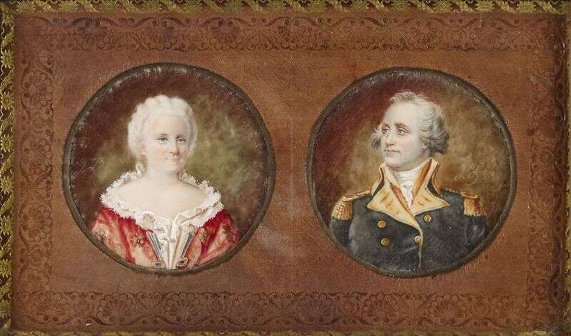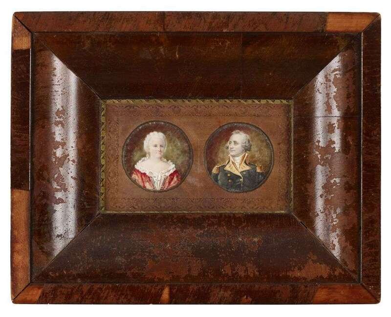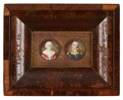 Each with incised initials, "J.L.," watercolor on ivory, indecipherable insciption on verso, backed with New York Herald newsprint from February 8, 1805, framed.