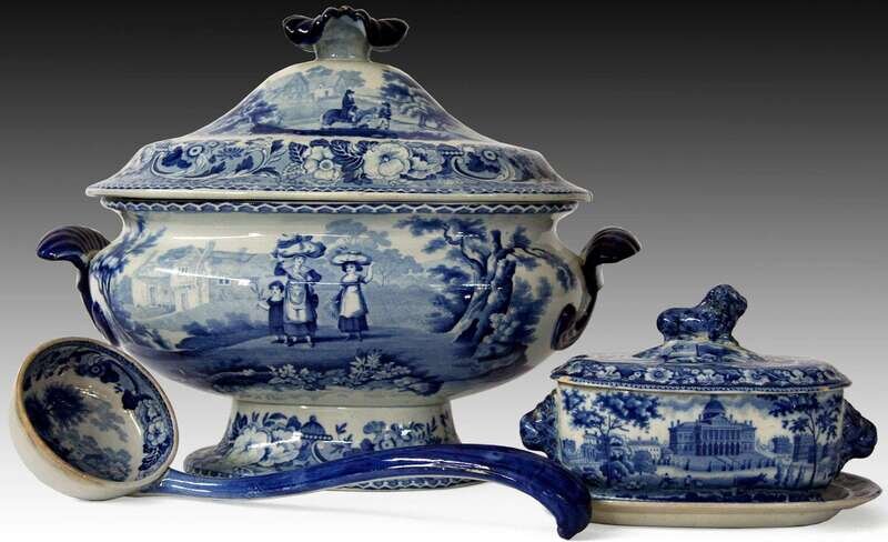 Two Staffordshire blue transfer-printed covered tureens england, circa 1840