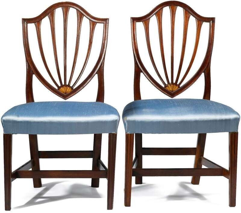 Pair of Federal mahogany shield-back side chairs massachusetts, circa 1800