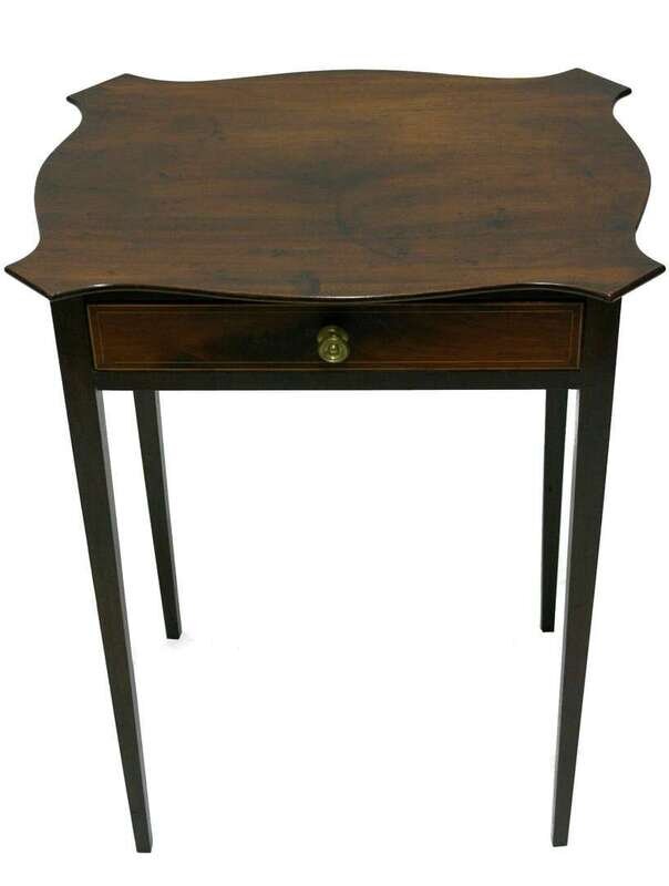 The serpentine top above single drawer and squared tapering legs.
