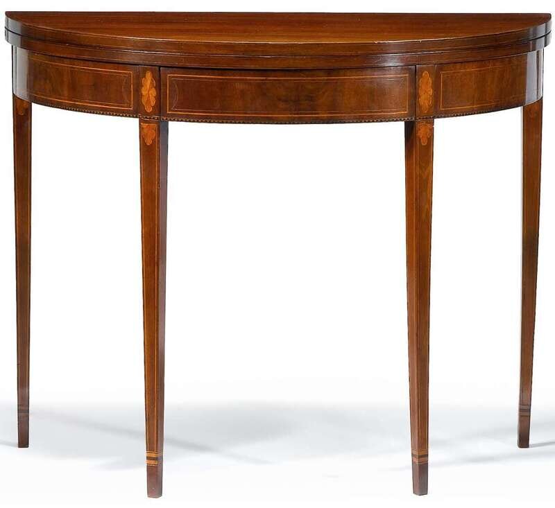 Federal mahogany inlaid demilune card table baltimore, md, circa 1800
