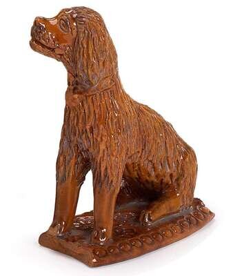 Glazed redware figure of a seated dog attributed to bell pottery, waynesburg, pennsylvania, 19th century