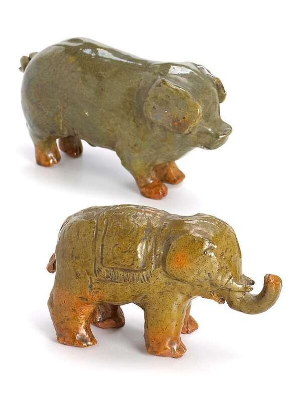 Glazed redware figures of an elephant and a pig carrie stahl schultz, circa 1933