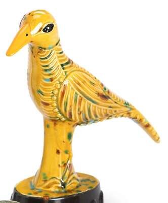 Glazed bird figurine attributed to james christian seagraves, lehigh county, pa, 20th century