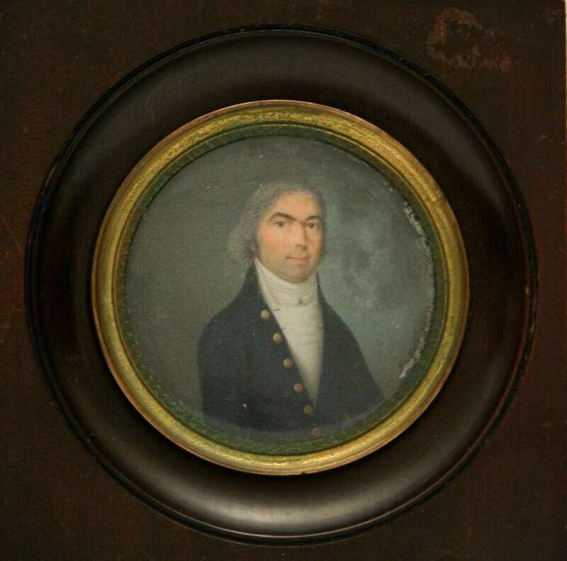 Dated on verso, "1761 Aug.," watercolor on ivory, framed.