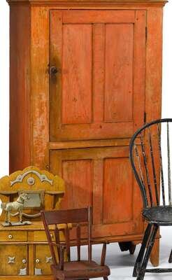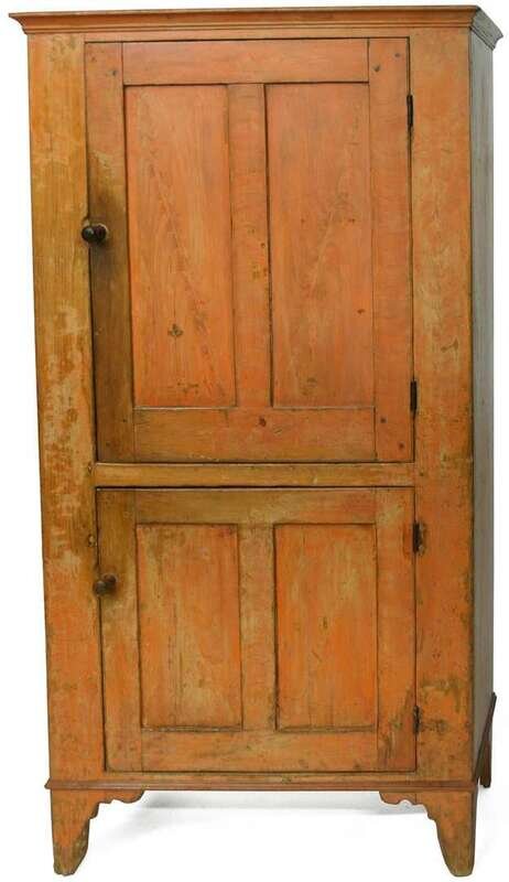 Orange painted and grain-painted milk cupboard early 19th century