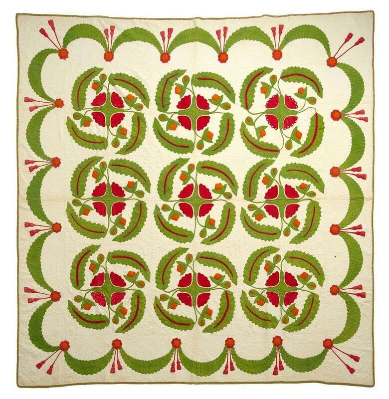 Appliqued quilt possibly york county, mid-19th century
