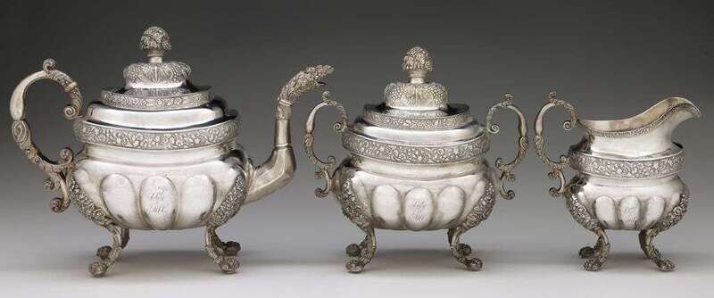 Coin silver tea service john crawford, new york and philadelphia, 1815-1837
