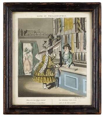 Aquatint, from E.W. Clay's Life in Philadelphia, (1833) London, England, framed.