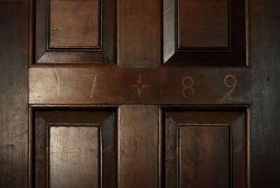 Inlaid walnut cupboard pennsylvania, dated "1789"
