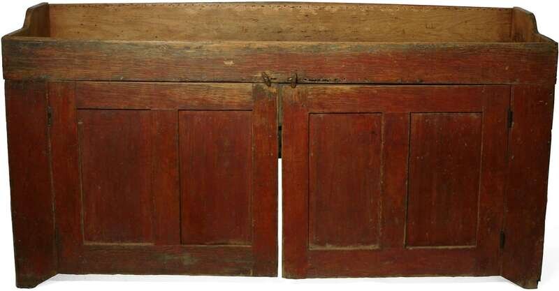 Large red-painted dry sink pennsylvania, 19th century
