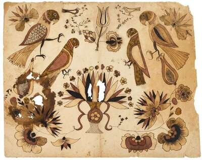 Fraktur: Drawing of Birds and Flowers early 19th century
