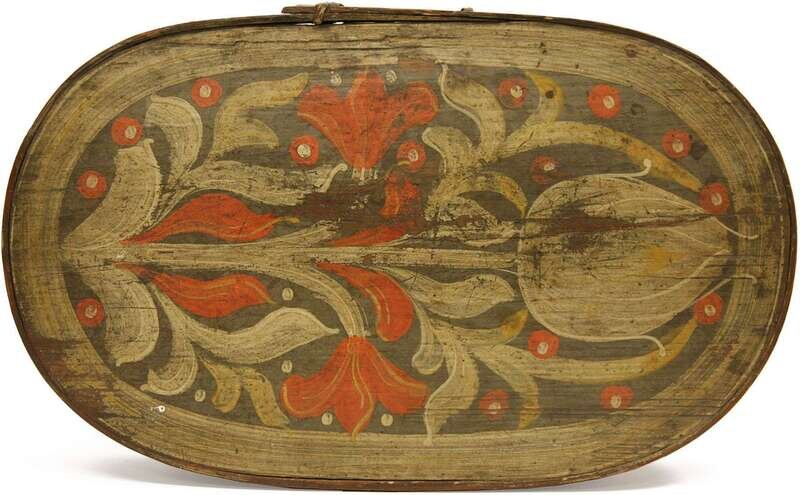Painted and decorated bride's box continental, 19th century