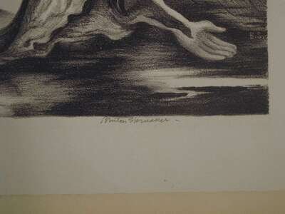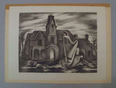 Lithograph. Spruance, Benton. "Harp Once Played." 1935/ 1936. #3/30. 13 1/8 x 17 1/2 inches; 273 x 351mm - sheet size. Numbered, titled and signed in pencil by Benton Spruance. Clean and attractive. Depicting a house at the corner of Green & Tulpehocken in Germantown.