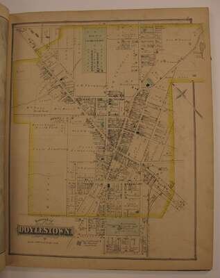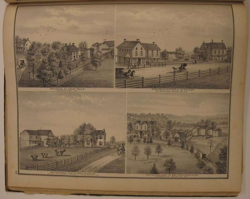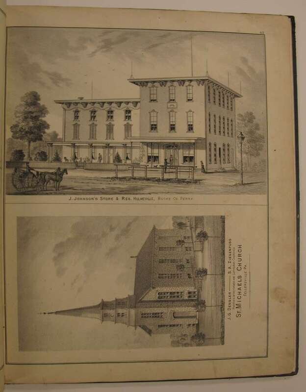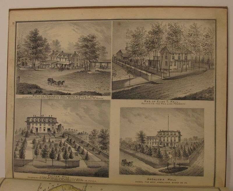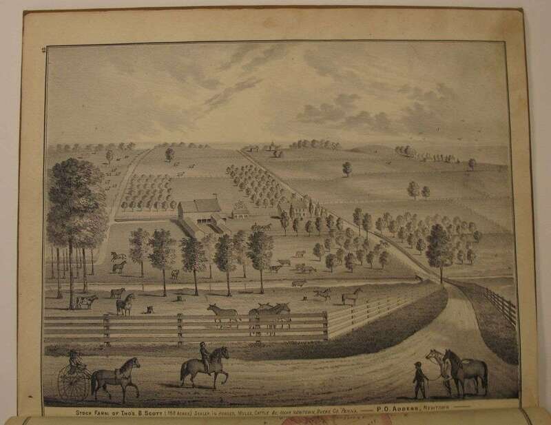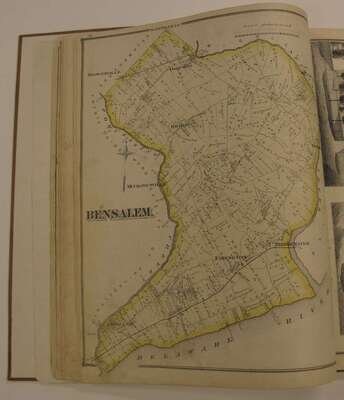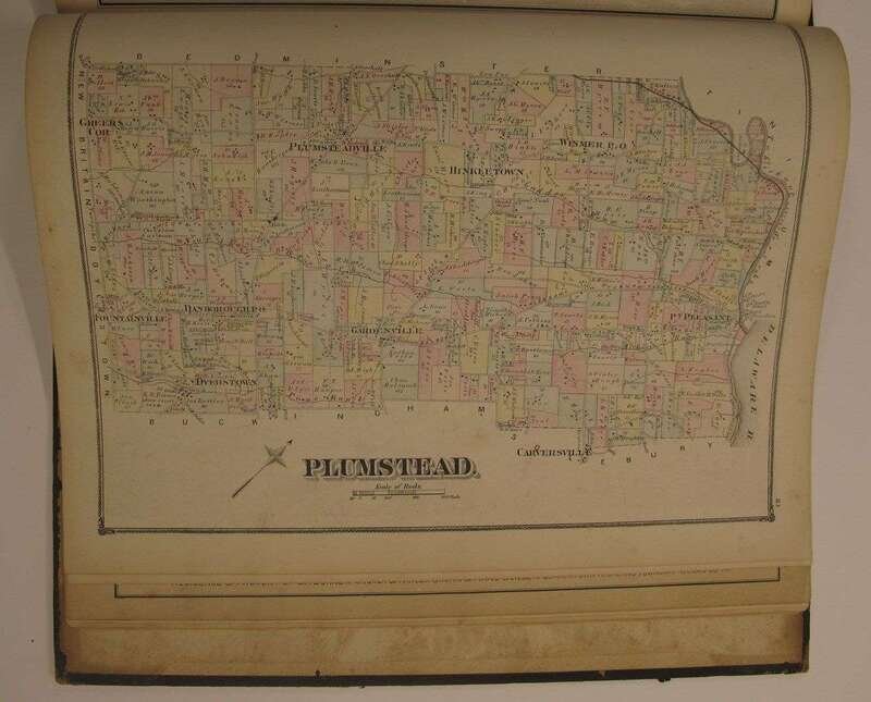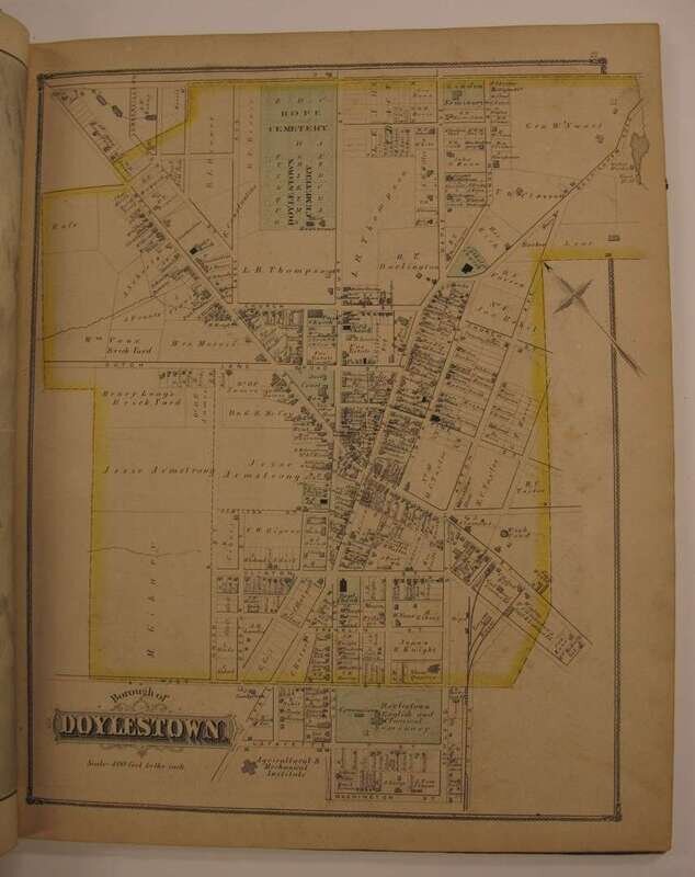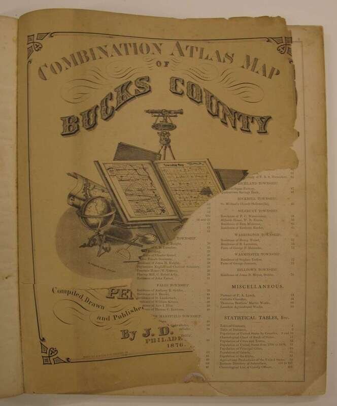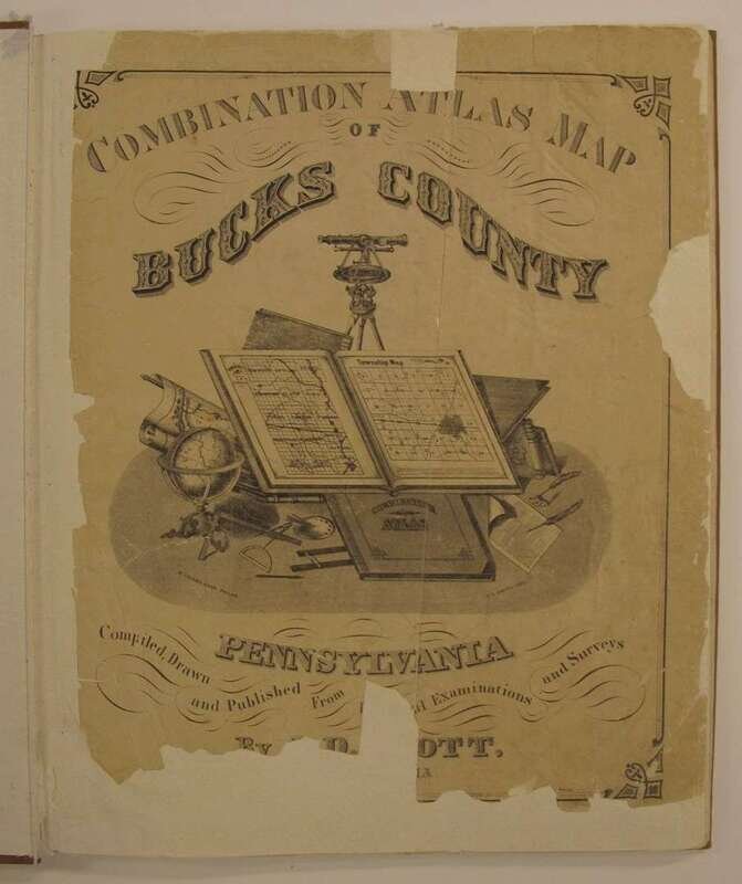 (Property Atlases.) Scott, J.D., pub. Combination Atlas Map of Bucks County, Pennsylvania. Philadelphia, 1876. Folio, orig. cloth, gilt, morocco back & corners; rubbed & worn, covers detaching, bdg breaking. With 42 color maps, b/w litho views. Title page defective, contents leaf torn. Scattered minor spotting. * Another copy of the preceding, modern cloth, title repaired, 40 (of 42) color maps, b/w views, lacking pp23/24 views, p27/28 Doylestown map & views; 31/32 Buckingham map & views, 103-108, terminal text. * Another copy of the preceding, orig. cloth, gilt, later morocco back & corners; extremities rubbed. With 42 color maps. Title & content leaves repaired, repairs in several map margins, text pp103-108 defective. Minor spotting. All sold with all faults.