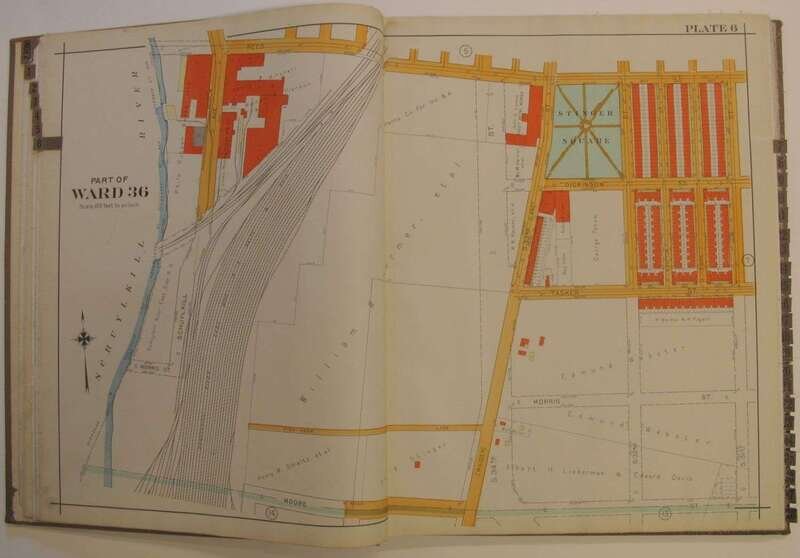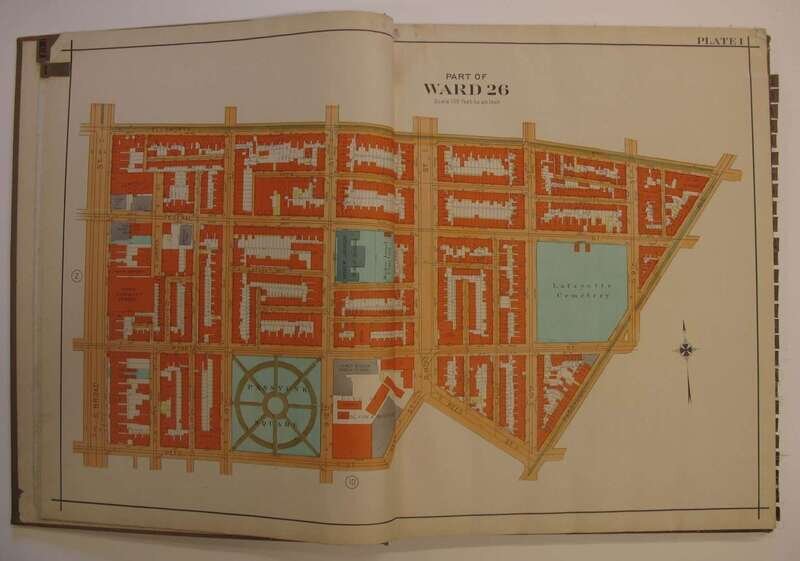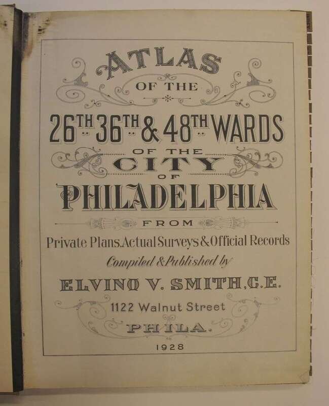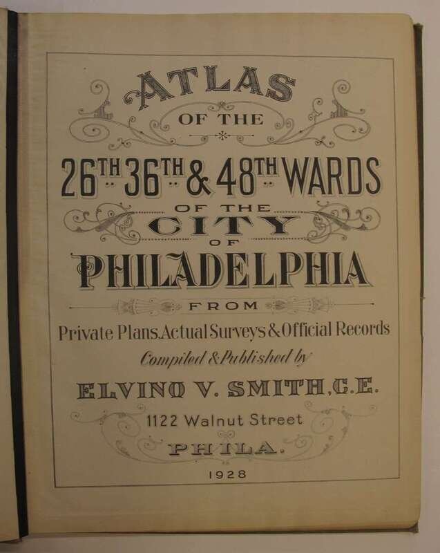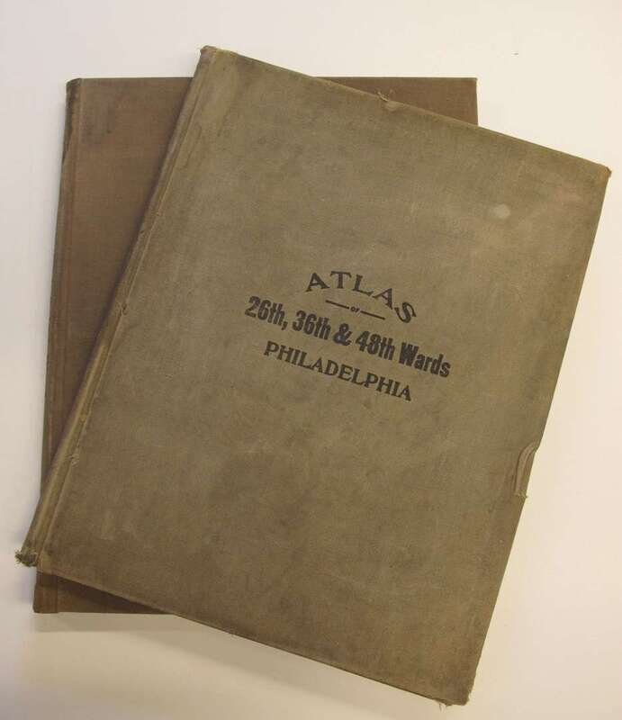 (Property Atlases - South Philadelphia.): Smith, Elvino V. Atlas of the 26th, 36th & 48th Wards of the City of Philadelphia. Philadelphia, 1928. Folio, orig. cloth; lightly to moderately worn. With index map + 28 double-page linen-backed color maps. Tabs present. Index map slightly dusty, faint dampstain at upper gutters of maps - otherwise clean and bright. Front free endpaper excised. * Another copy of the preceding, orig. cloth; moderately worn & dusty, index map + 28 double-page color maps (not linen-backed). Slightly toned.