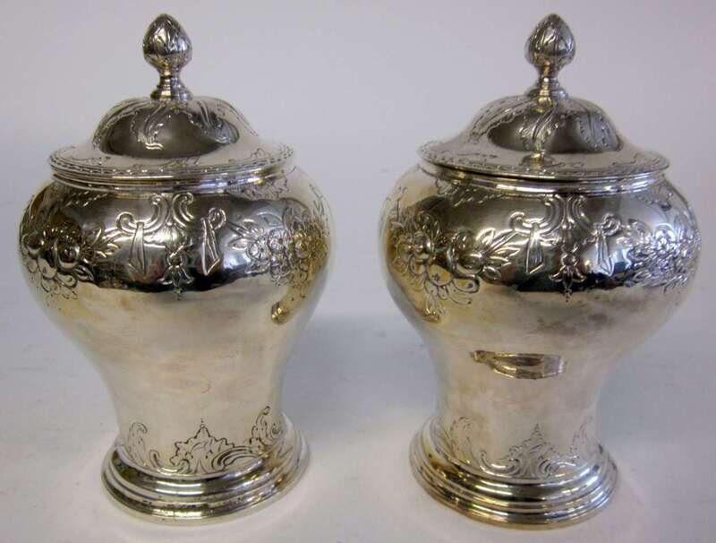 Pair Scottish George II silver tea caddies william dempster, assay master hugh gordon, edinburgh, 1756-57