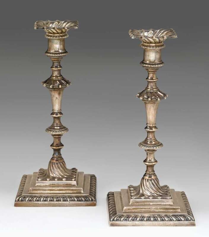 Pair Edward VII silver candlesticks hawksworth, eyre & co. ltd., sheffield, 1902-3