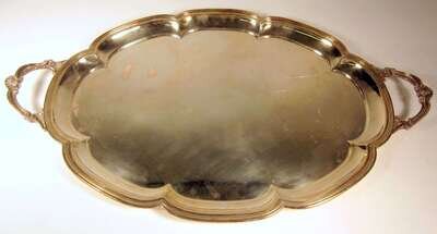 Large shaped tray with scroll and shell decoration to handles.