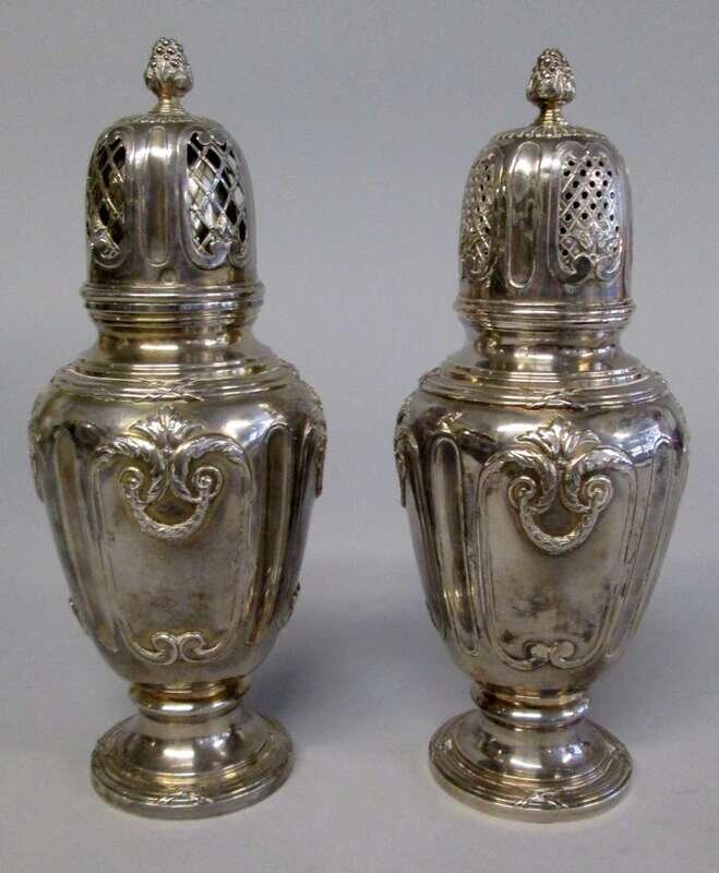 Pair of French repoussé silver casters limousin & souche, paris, circa 1915