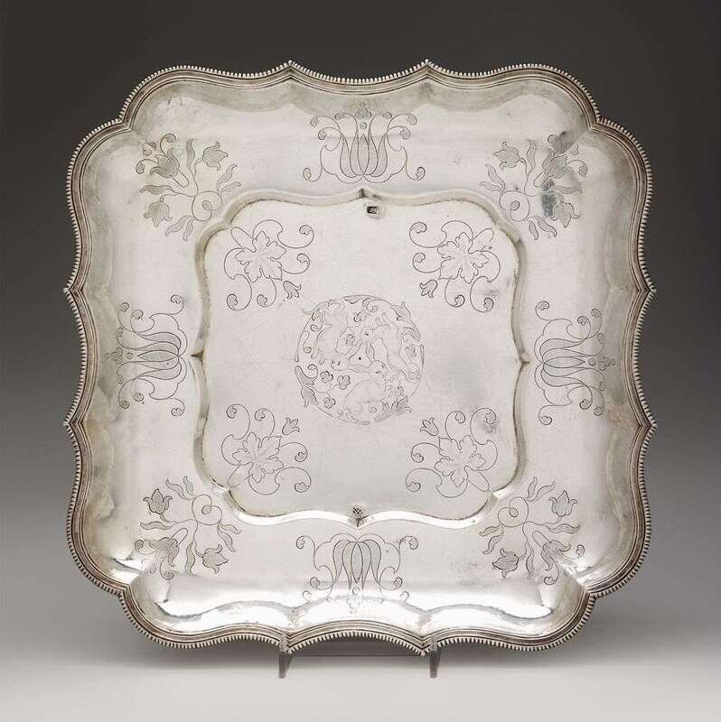 German silver tray maker's mark g. o., probably 18th century leipzig