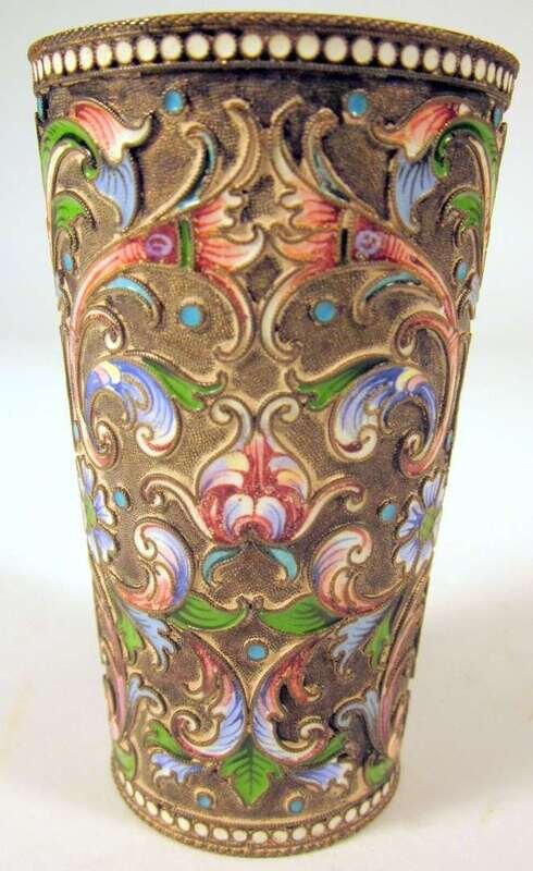 Russian cloisonné enameled silver beaker vasily agavonav, assay master ivan lebedkin, late 19th/early 20th century