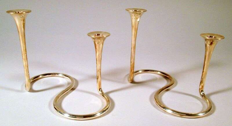 Pair Danish silver two-light candelabra egil jensen for anton michelsen, copenhagen, 20th century