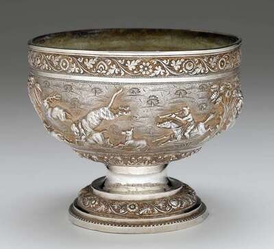 Indian repoussé and chased silver footed bowl late 19th/early 20th century