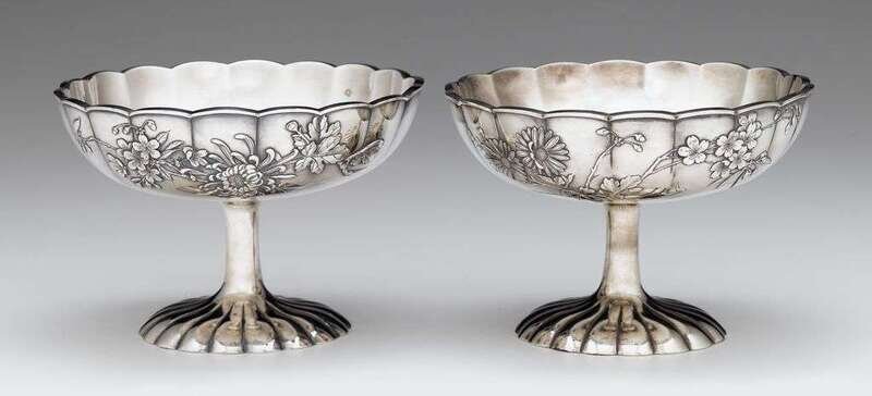 Pair Japanese silver tazzas meiji period