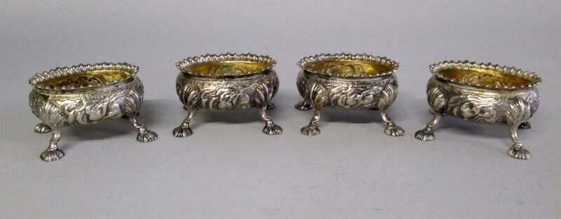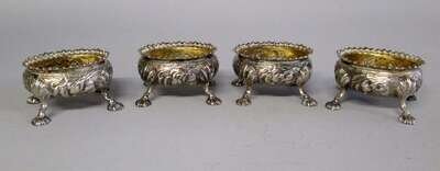 Set of George III repoussé silver salt cellars london, 18th century