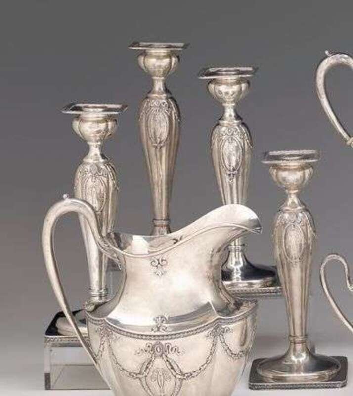 Set of four sterling silver candlesticks dominick & haff, new york, ny, late 19th/early 20th century
