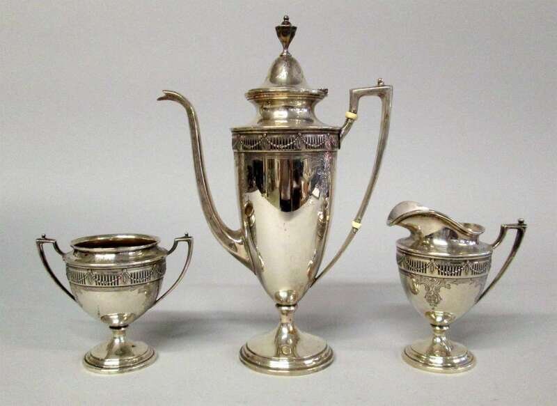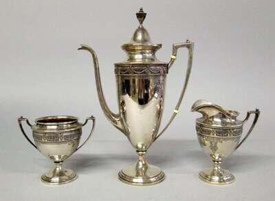 Sterling silver three-piece coffee service in the Neoclassical style frank m. whiting & co., north attleboro, ma, early 20th century