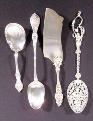 Three sterling silver serving spoons joseph smith for reed & barton, taunton, ma, circa 1900
