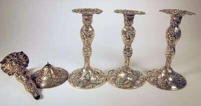 Set of four sterling silver candlesticks mauser manufacturing co., new york, ny, late 19th century