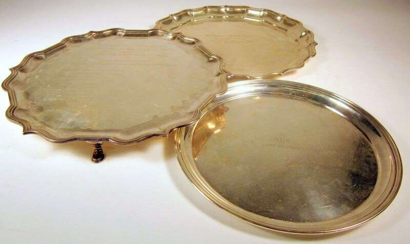 Three sterling silver equestrian-themed presentation trays