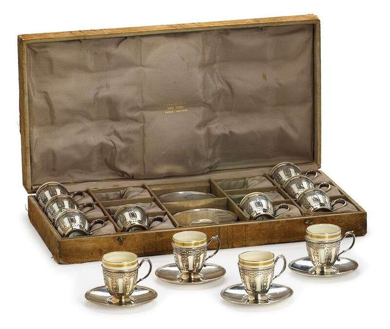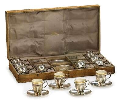 Set of twelve sterling silver demitasse cups and saucers tiffany & co., new york, ny, early to mid 20th century