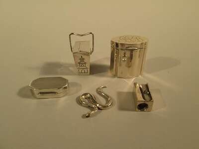 Including a box in the form of a Chinese take-out carton, a serpent-shaped charm, a pencil sharpener, and two further boxes retailed in Italy. (5).
