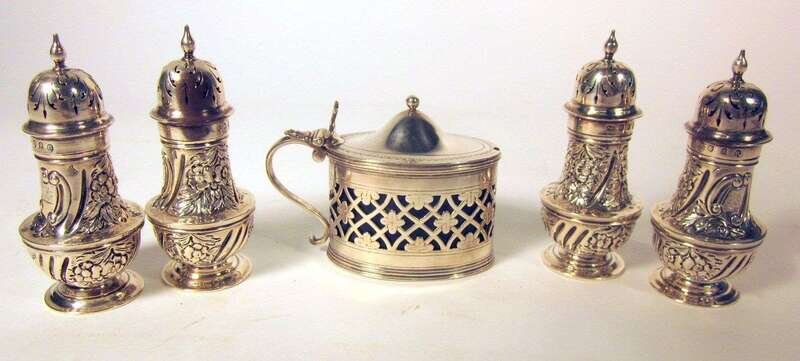 Four Scottish Victorian repoussé silver casters hamilton & inches, edinburgh, 1894-95